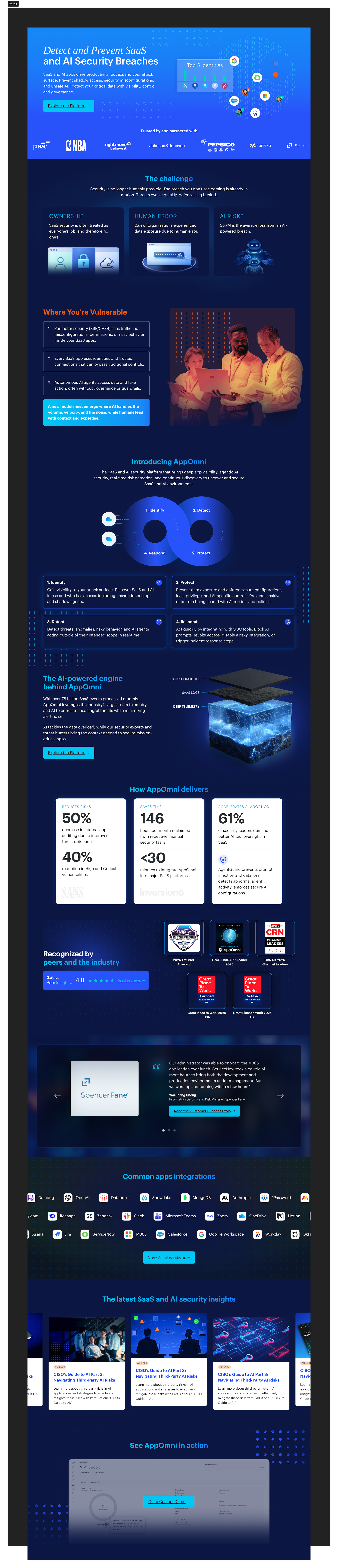 Results: Successfully integrated AI into the event design workflow for Black Hat, increasing efficiency in visual asset creation and enabling the exploration of a wider range of creative concepts. Contributed to an enhanced digital brand presence for AppOmni through website improvements and a scalable design system.