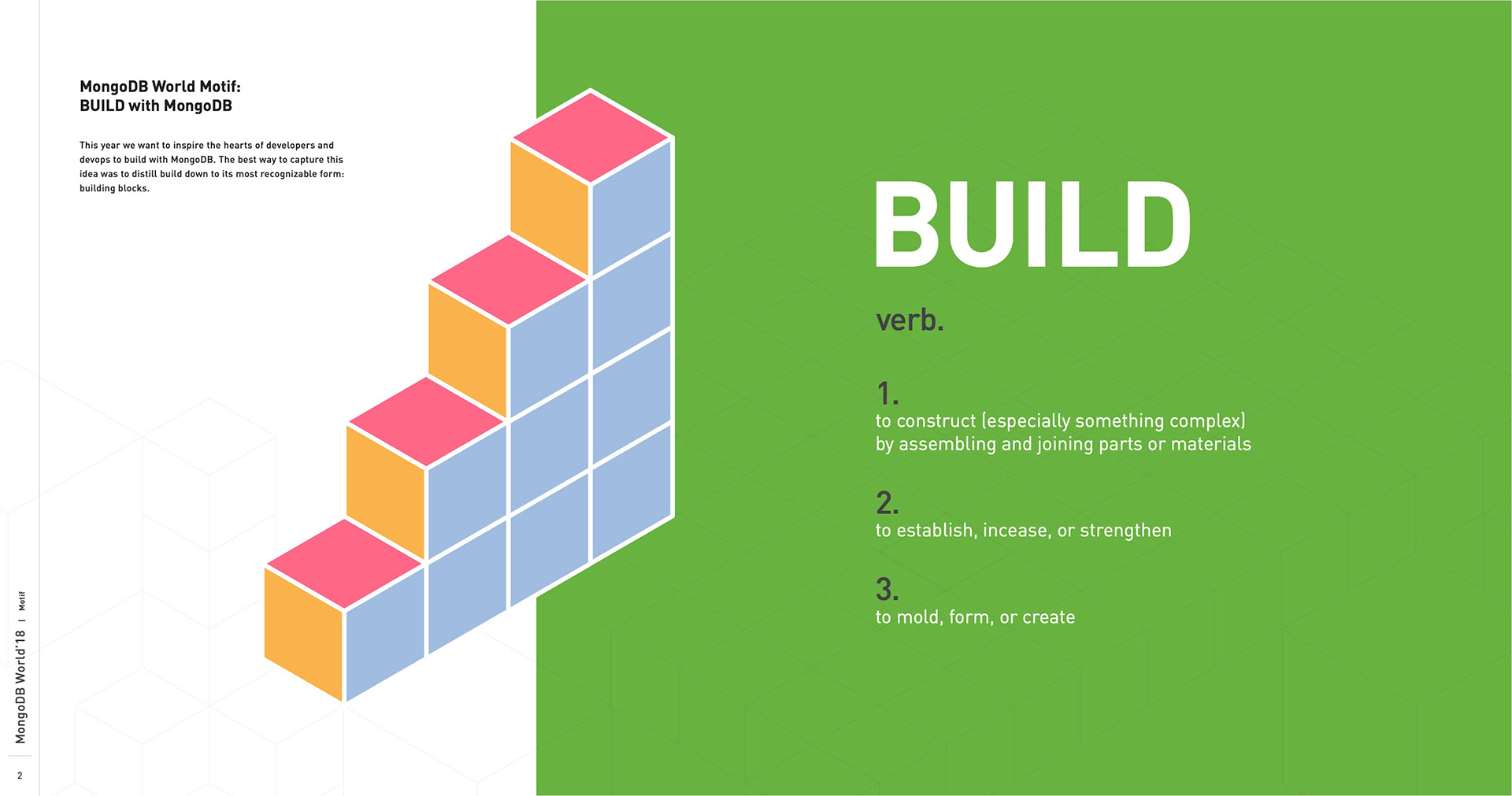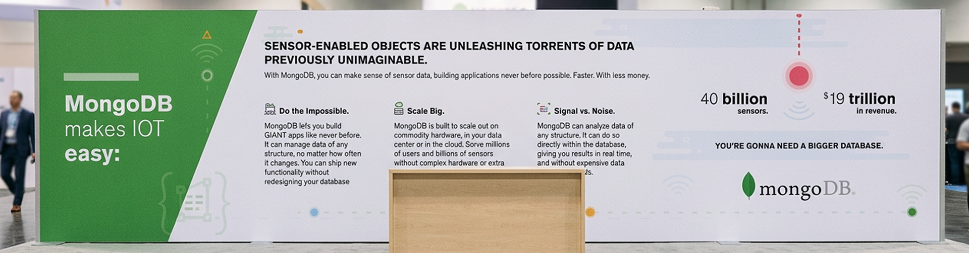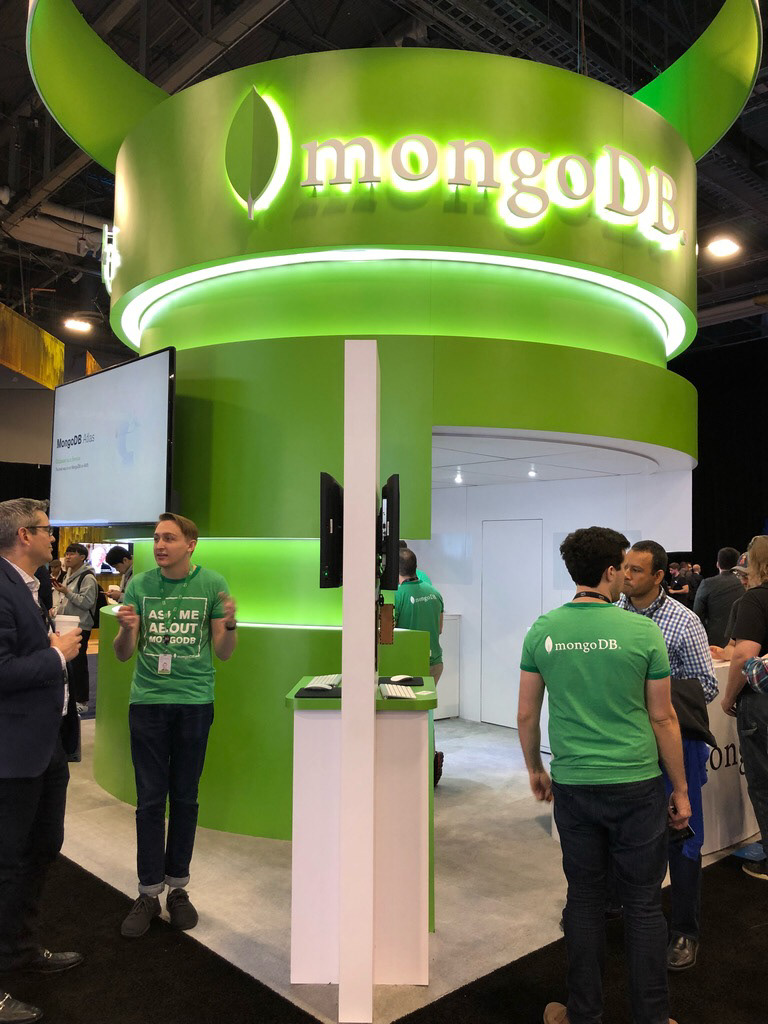 MongoDB: Booth concept and design for AWS re:Invent, full creative direction for MongoDB World and regional events. Conference identity, promotional materials, environmental design, and partner event coordination.