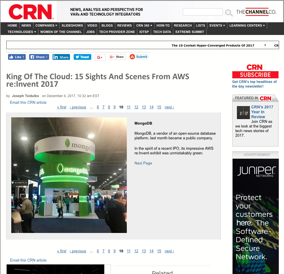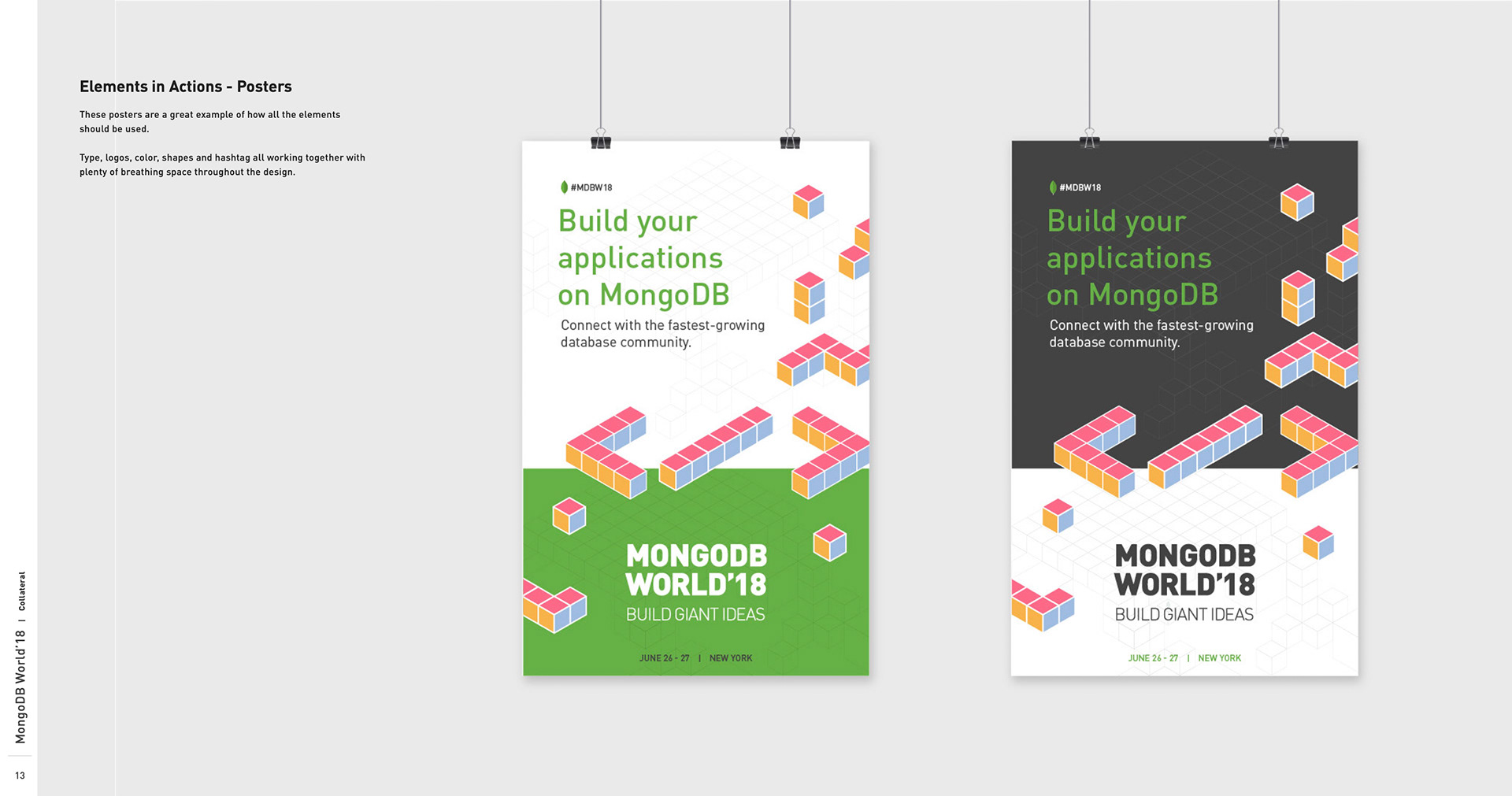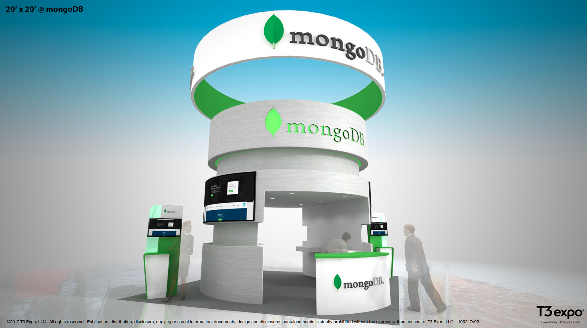 MongoDB: Booth concept and design for AWS re:Invent, full creative direction for MongoDB World and regional events. Conference identity, promotional materials, environmental design, and partner event coordination.